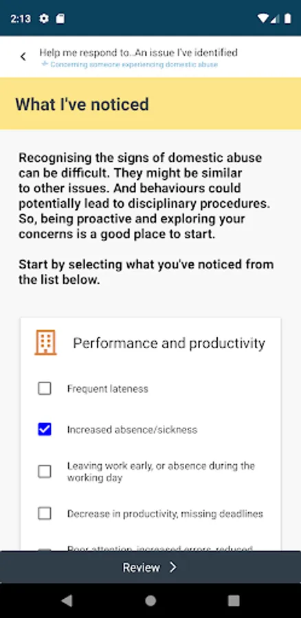 Designed with the needs of managers, HR professionals and business owners in mind, the app helps you to quickly understand the situation you are managing and respond appropriately through simple assessment tools and practical advice.