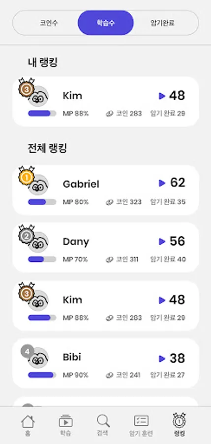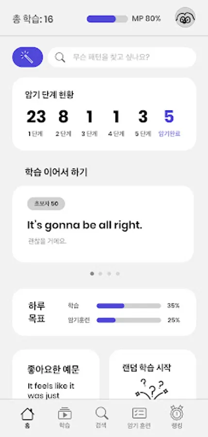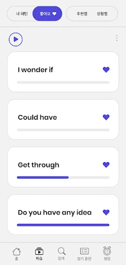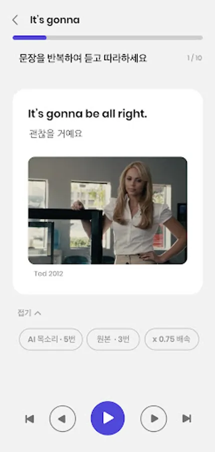 It provides learning videos by extracting the most used patterns from American drama scripts through big data analysis.