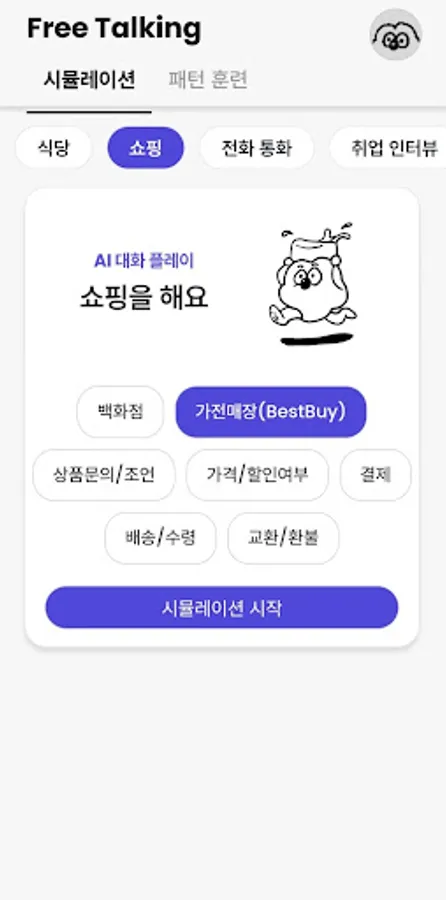 This is an AI GPT-based English free conversation training app that specializes in practical conversations! It is a service that allows you to simulate real-life situations based on situational conversations and frequently used sentence patterns.