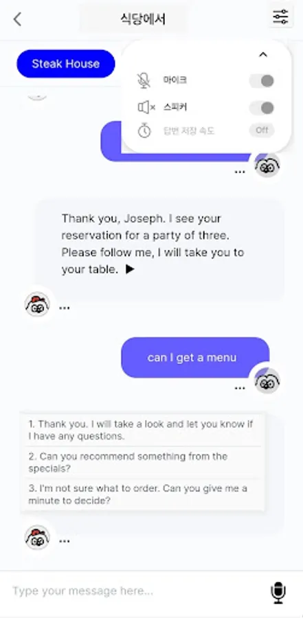 Through AI conversation simulations in various situations such as restaurants, meetings, and banks, you can engage in natural English conversations. When you're unsure of how to respond, you can check recommended answers and continue learning. This service is perfect for those who want to improve their English conversational skills in practical situations.