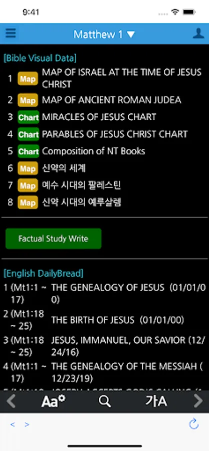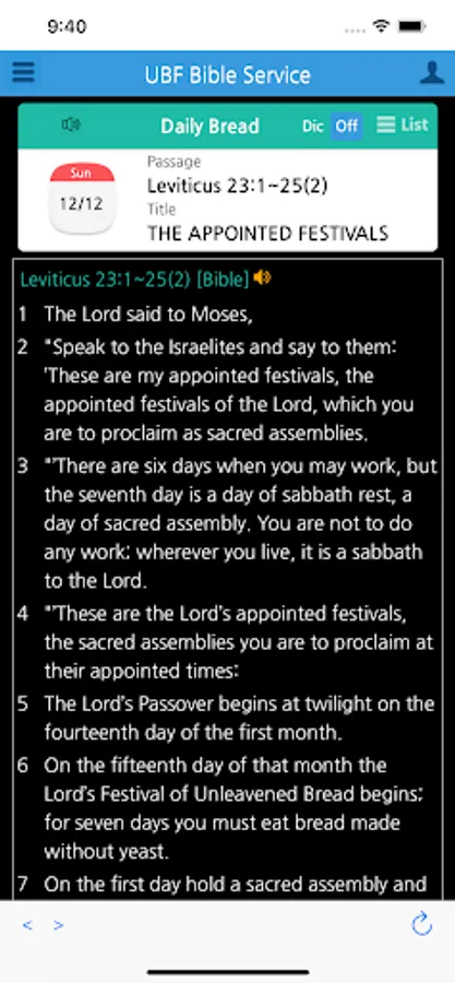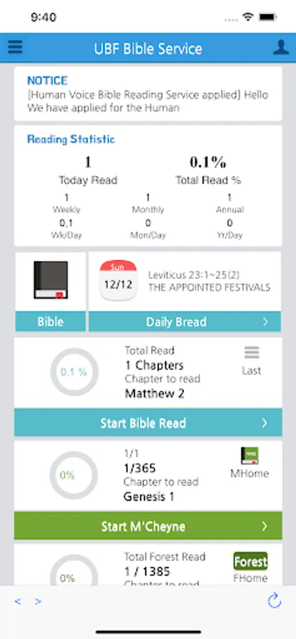 UBF Daily Bread is an app that provides UBF Daily bread content and Bible verses to UBF members. It encourages UBF members to read the Bible faithfully on their smartphones. If you already have an ID for UBF Bible Web Service, use that ID/password.