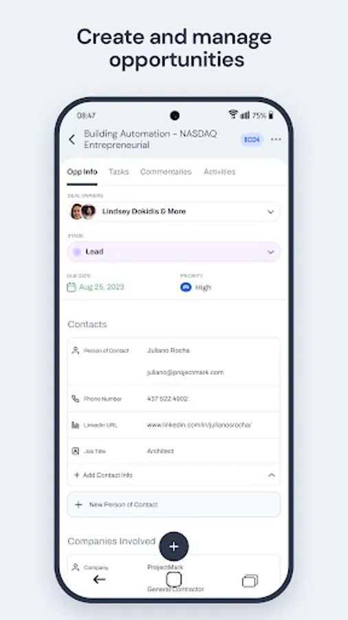 ProjectMark’s CRM mobile app is designed to help businesses streamline their opportunity tracking process. The app provides a user-friendly interface that allows users to easily create, manage, and track opportunities from their mobile devices. With real-time access to opportunity data, users can quickly respond to changes in the sales pipeline and make informed decisions.