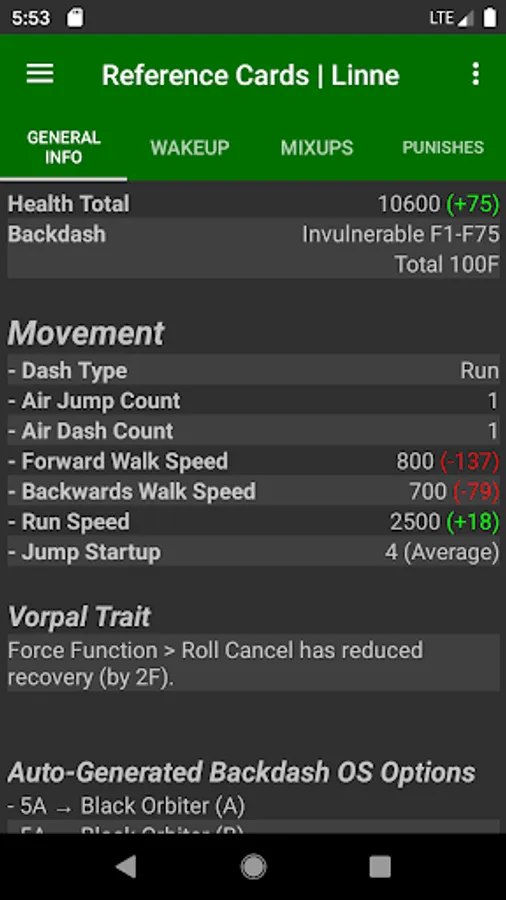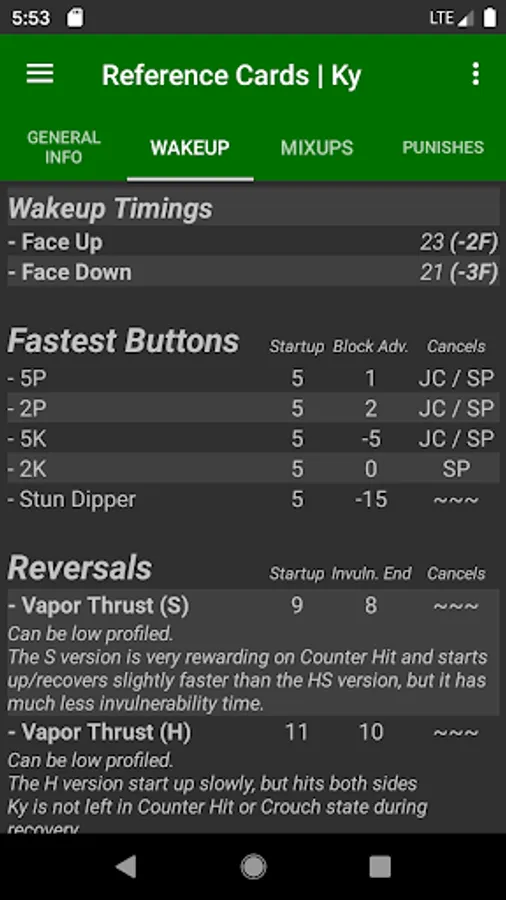 - Auto-generate Matchup Reference Cards, giving you ready-made matchup notes against any character! (Includes list of Mixups & Plus-On-Block attacks, Wakeup info, and more!)