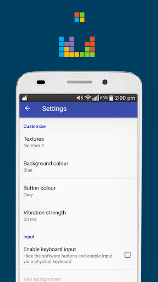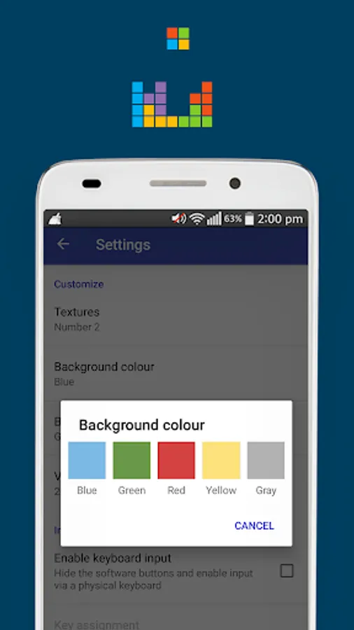 You can choose between 3 textures, 5 background colours and 5 button colours.