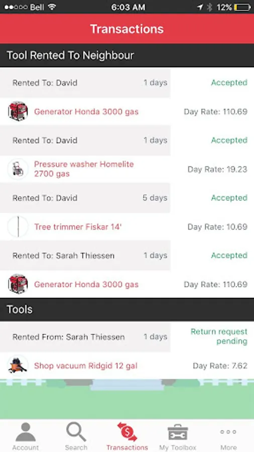 A rating system is in place so you rest with ease knowing that your tools will be treated with care. The good neighbour keeps track of who has your tools and will make sure your tool comes back the way it left. All transactions are conducted through the app. Imagine a community where you can just walk down the street for a tool. instead of running to the hardware store and spending a fortune.
