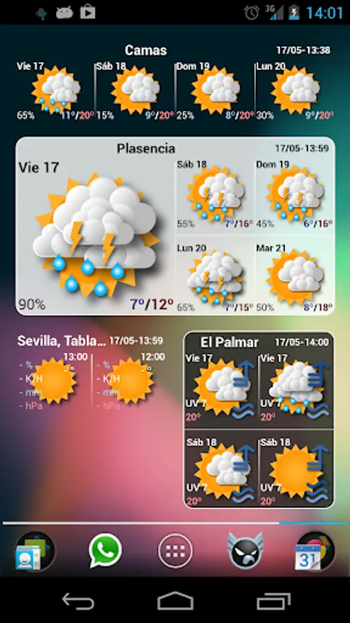 You can create widgets for weather forecasting based on your location or your favorite places or beaches. You can also create widgets with data from the meteorological stations of the network of the Meteorological Agency.