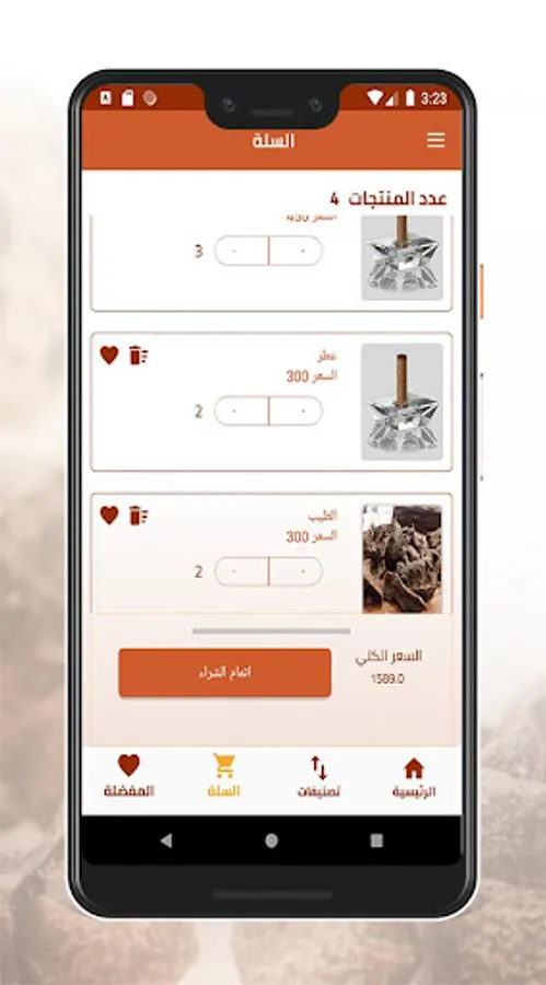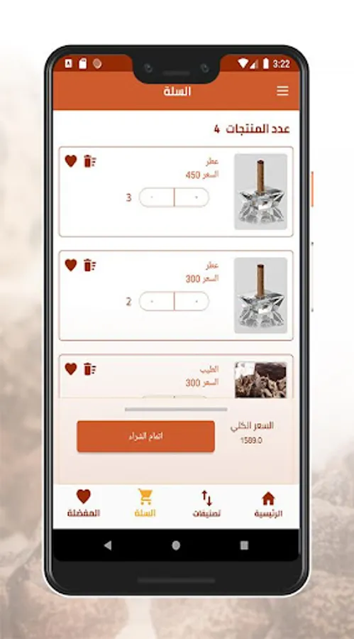 The application of Shada El Tayeb displays all kinds of incense, perfumes and details of each product. The user can buy them and make the payment process online. The user can also add his products to his favorites and can then process the request.