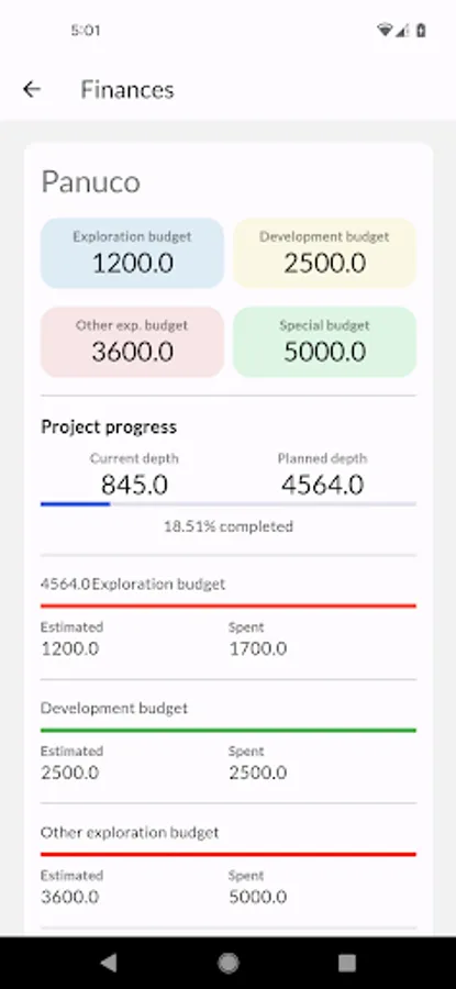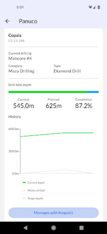 The exploration covers the goals related to drill holes and drill rigs where the drilled depth of each drill hole is monitored daily with the planned, targeted and achieved. The drill data can be shared in text, pictures, or videos on the messaging app.