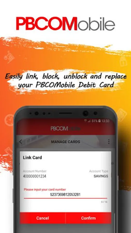 • Easily link, block, unblock, and replace your PBCOMobile Debit Card via the mobile app.