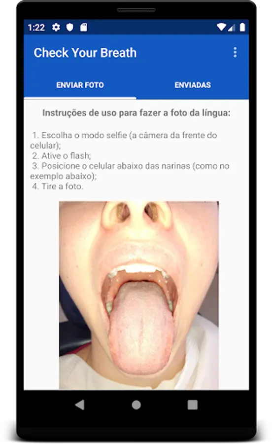 Check Your Breath is the newest tool for diagnosing bad breath. With it you will be able to identify the presence of halitosis. Just one picture of the language will allow our database to indicate the degree of halitosis. Remembering that 95% of cases of halitosis are of oral origin.