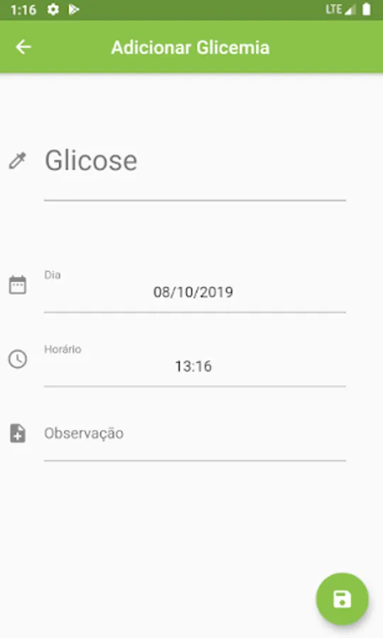 Medição de Glicemia Screenshots