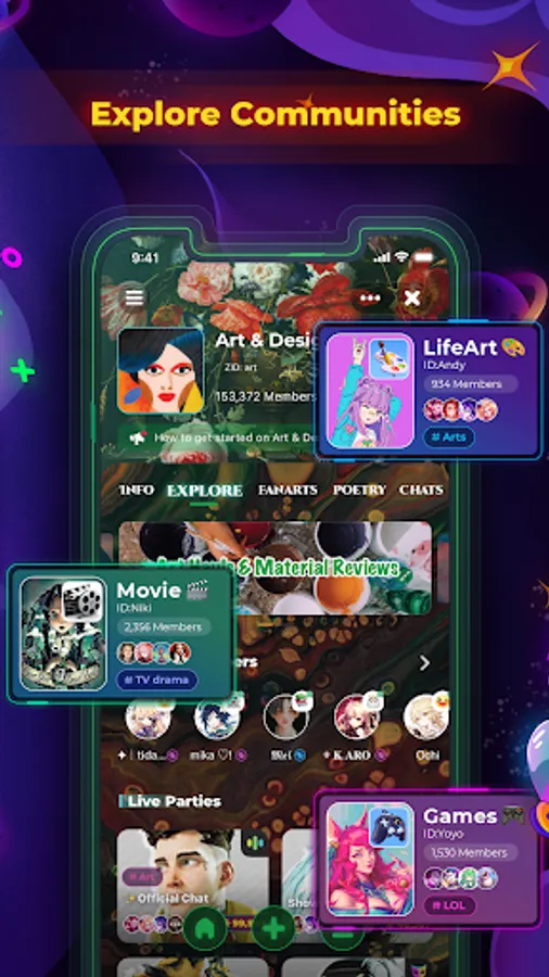 Join Live Parties for the coolest experiences with the coolest people -- Chatrooms allow you access to a world of new friends, centered around your shared interests! Use the tools our live Parties give you to make your experience memorable.