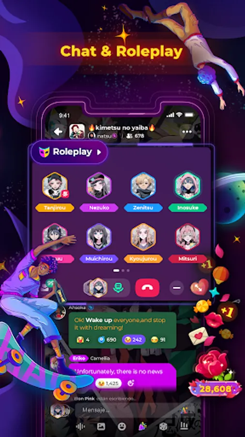 With Voice Chats, talk in real time with people from all over the world. Share life stories, sing a song, discuss the latest games you've played, a school club you joined, or get even closer through Roleplay and various challenges!