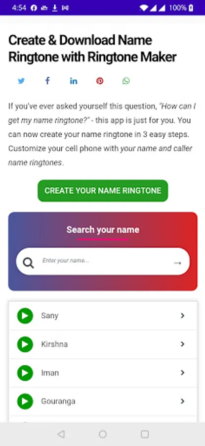 • Open name ringtone maker app and click 'Create Your Name Ringtone' button.