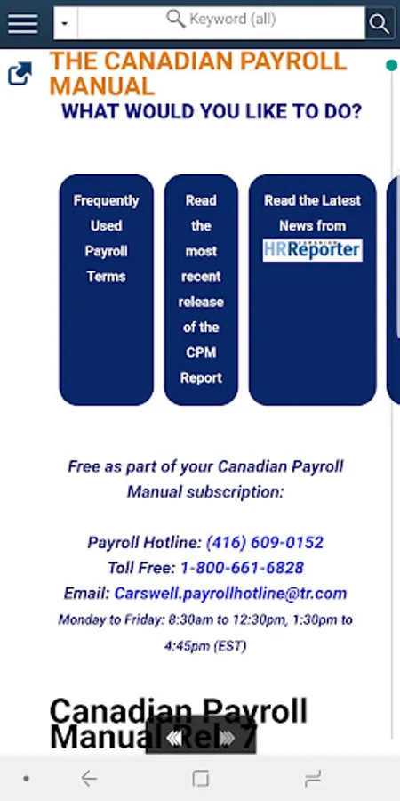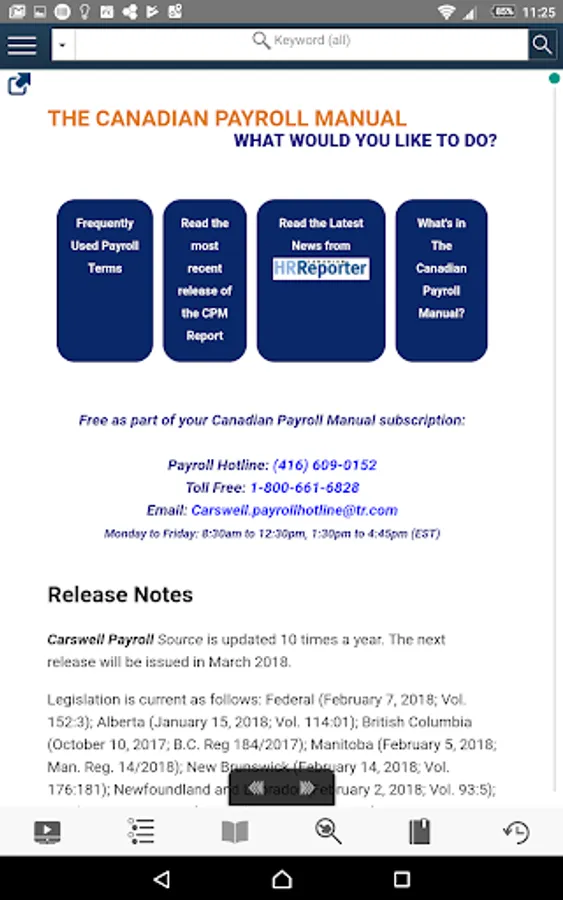 Introducing The Canadian Payroll Manual App from Thomson Reuters. As a payroll professional you need timely and accurate information to maintain compliance. Getting current and up-to-date legal and regulatory information is critical. Now, subscribers to The Canadian Payroll Manual Online (Elite and Classic versions) can access trusted and reliable payroll compliance information in one place. Keep up-to-date with ever-changing legal and regulatory requirements requiring payroll compliance, ensure compliance with federal/provincial payroll requirements, run an efficient and cost-effective payroll department and maintain awareness.