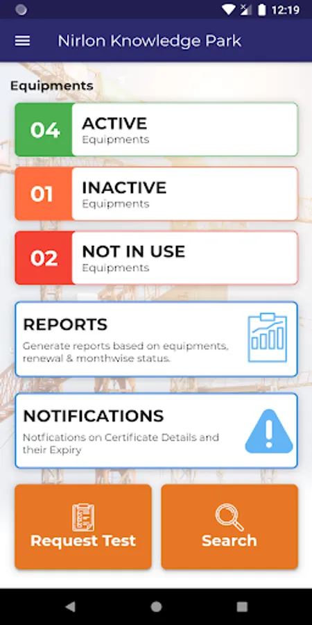 • View Reports – Monthly or for custom period, of the Equipments tested so far. Get a report of active, inactive and not in use equipments at your Site.