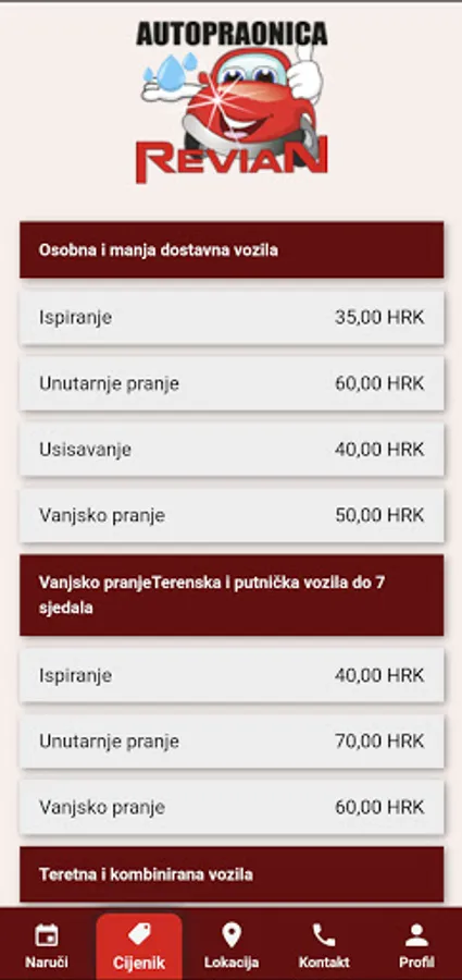 Mobile application that enables ordering a car wash service in the Revian car wash in Varaždin.