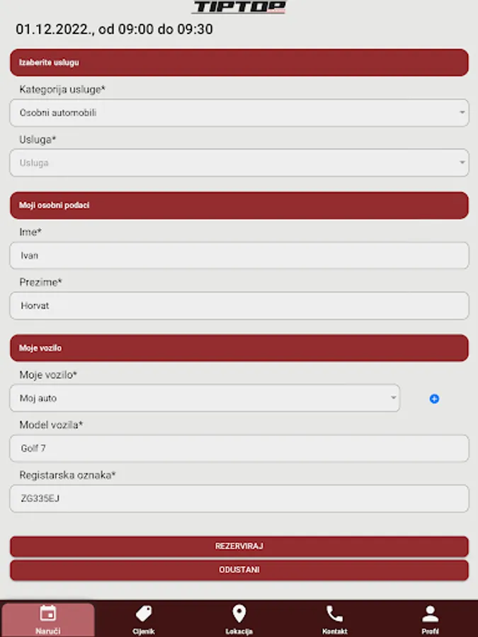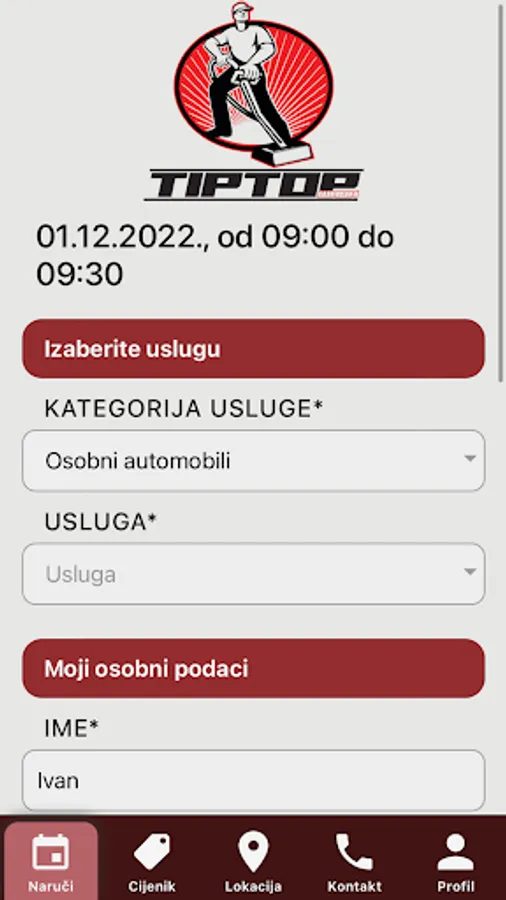 Aplikacija putem koje možete naručiti usluge autopraonice Tip Top Wash