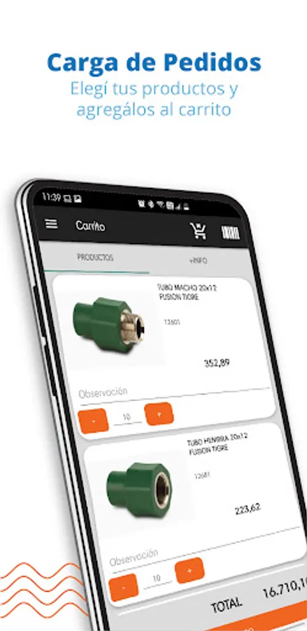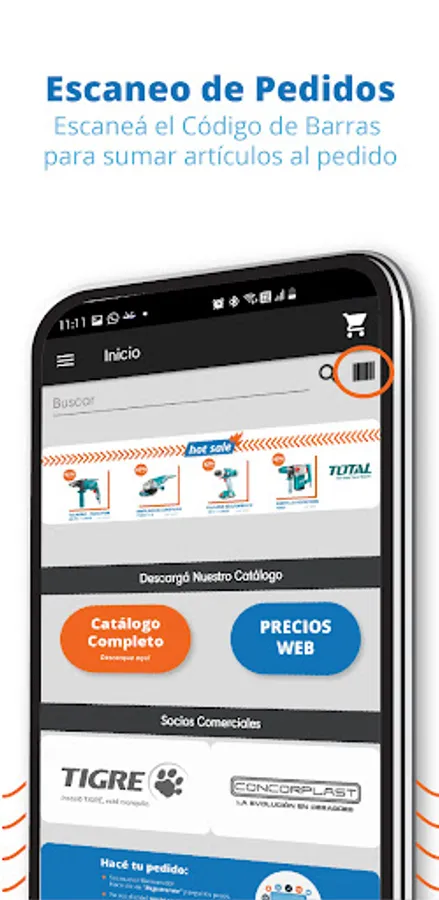 Through the APP you can load your orders by scanning the QR codes of the items, in addition to checking the current account and downloading the price list.