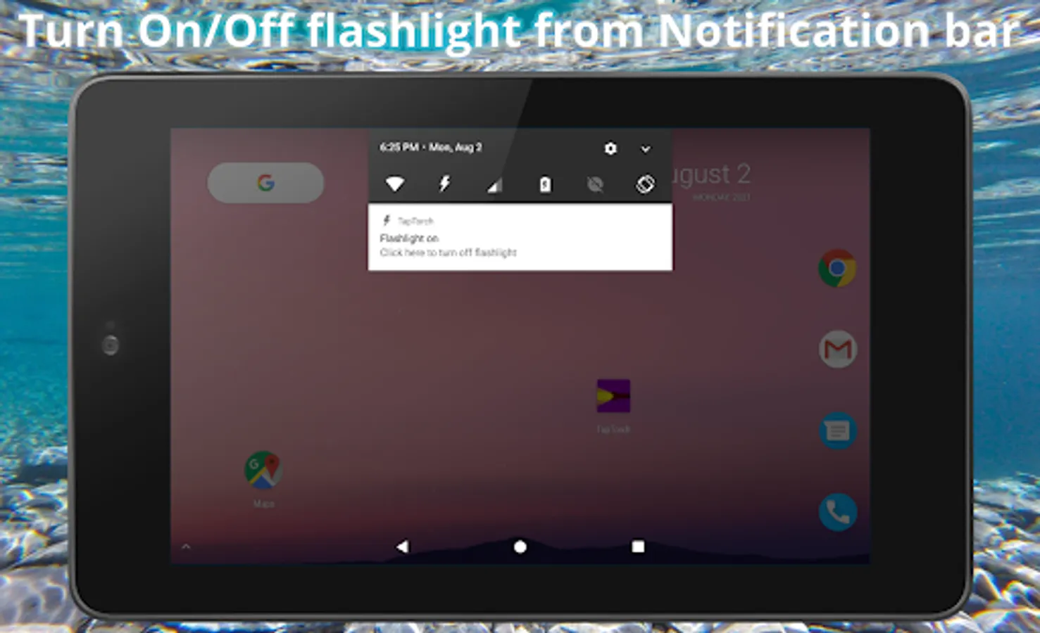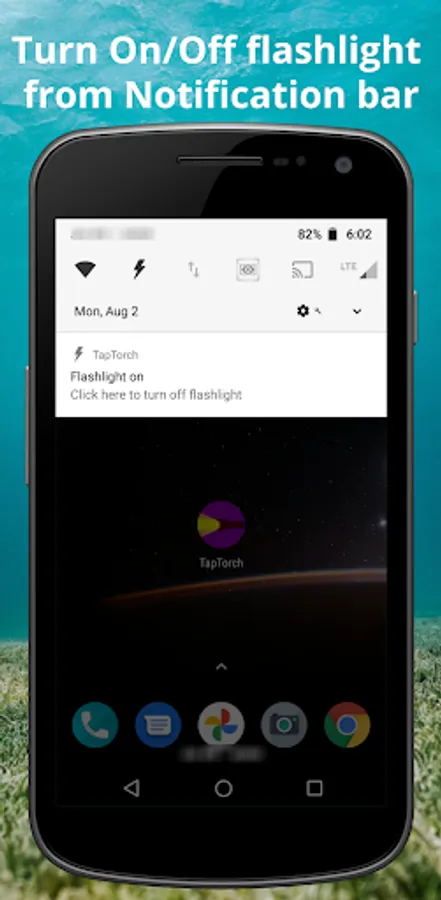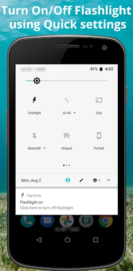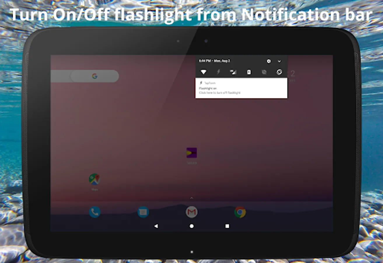 ✔ Click the TapTorch quick settings icon from android quick settings once to Turn On flashlight and click the TapTorch quick settings icon again to Turn Off flashlight.