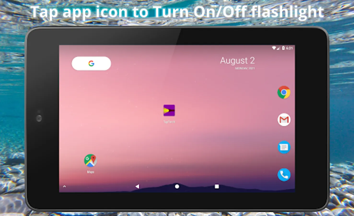 ✔ Click the TapTorch icon from App launcher screen once to Turn On flashlight and click the TapTorch icon again to Turn Off flashlight.