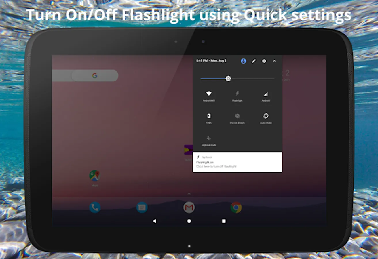 ✔ Flashlight can be turned on/off using either by clicking the app icon from launcher screen or by clicking quick settings from android top drag menu