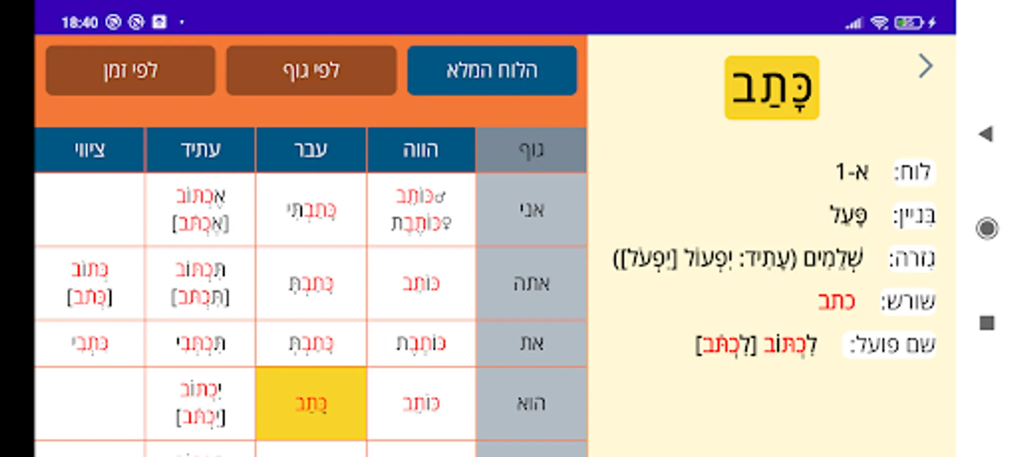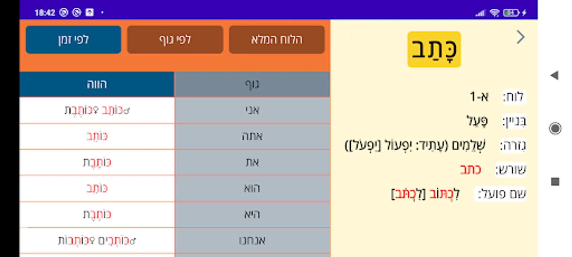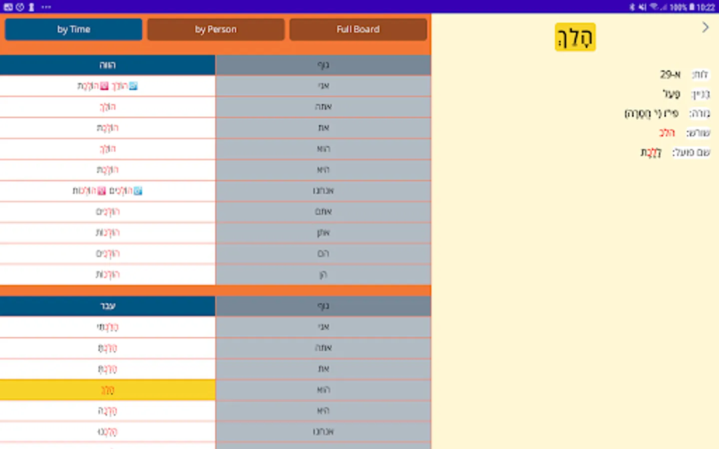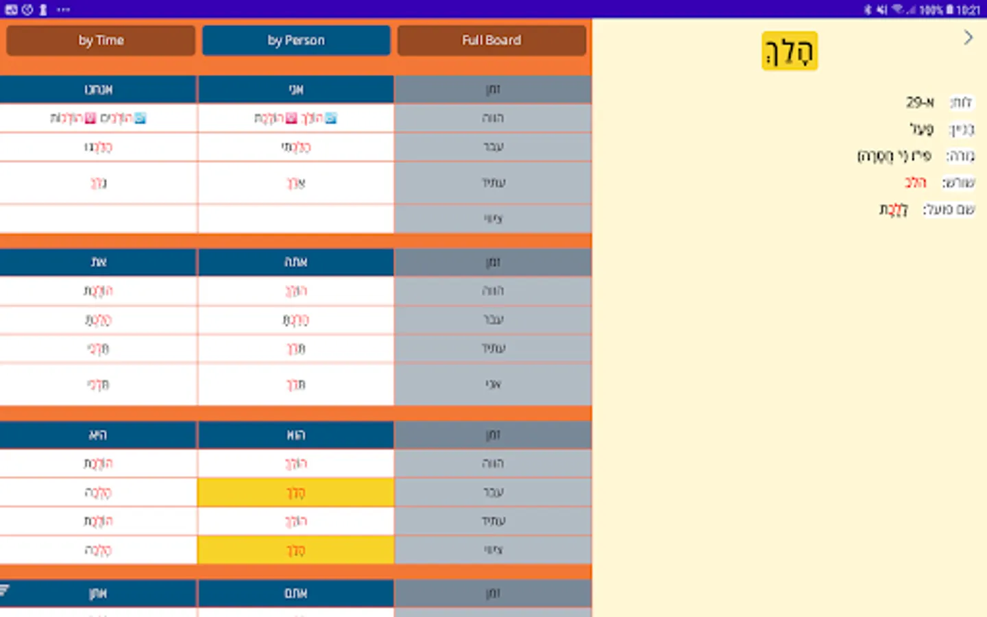 Hebrew verb construction and conjugation - for better learning and understanding the principles of the Hebrew language - this app provides some unique features: