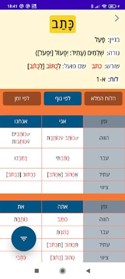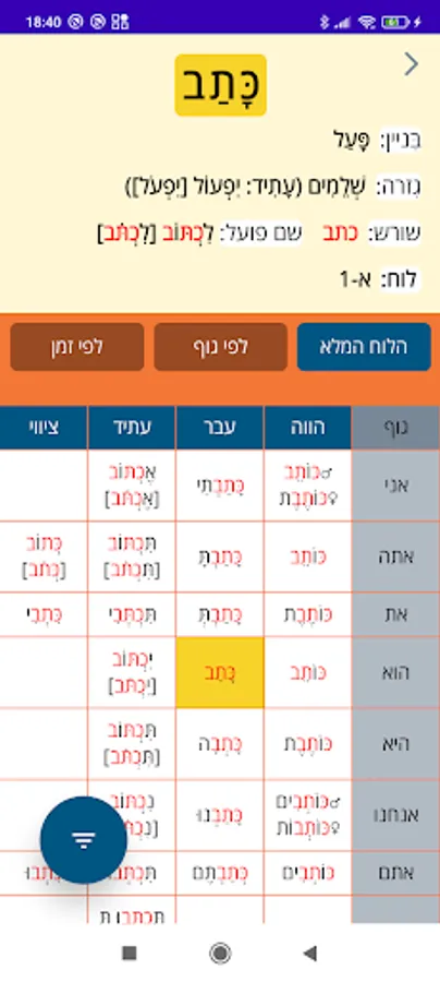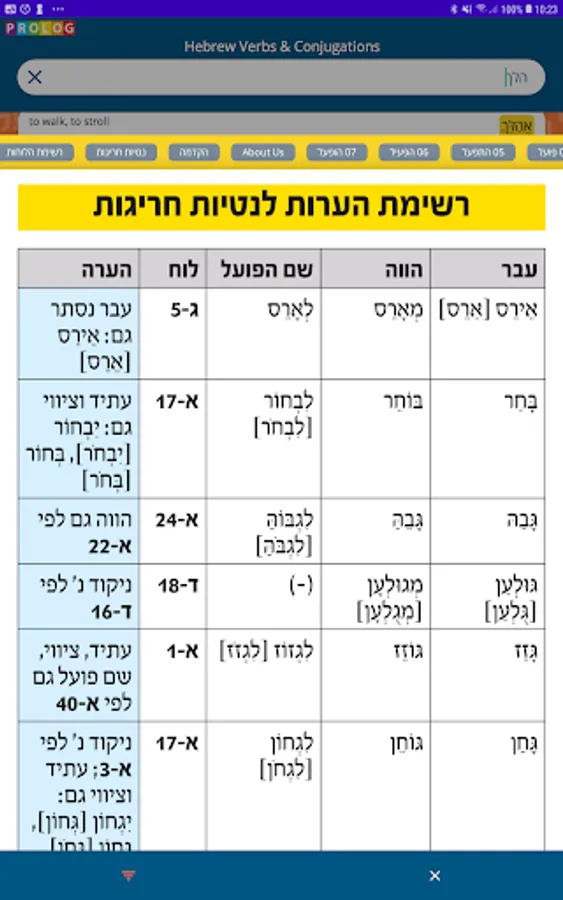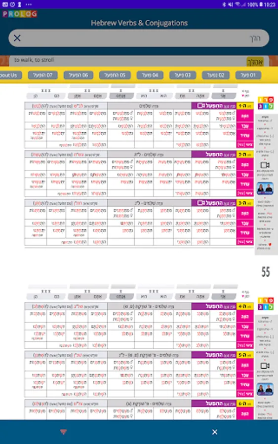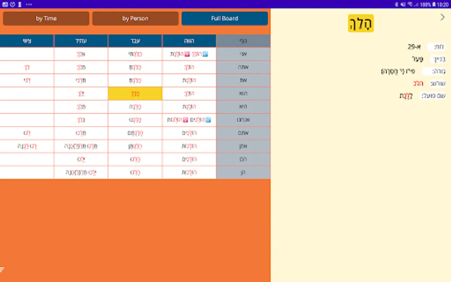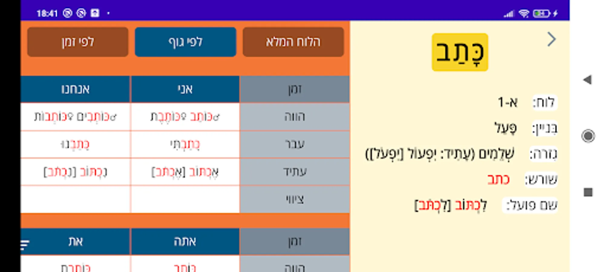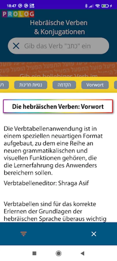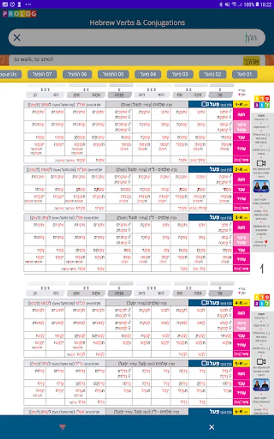 Hebrew verb construction and conjugation - for better learning and understanding the principles of the Hebrew language - this app provides some unique features: