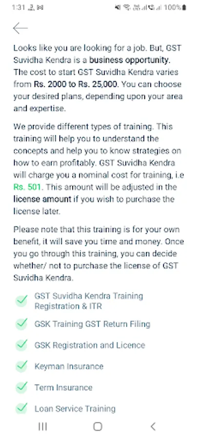 GST Suvidha Kendra program provides the opportunity to work with 400+ different services across eight different verticals, including GST services, Taxation and Accounting, Payment Services, Loan + Credit Card, Insurance, Tours & Travel, Website & Design, and Micro ATM. Anyone providing these services can become a part of the GST Suvidha Kendra program and set up their own business.