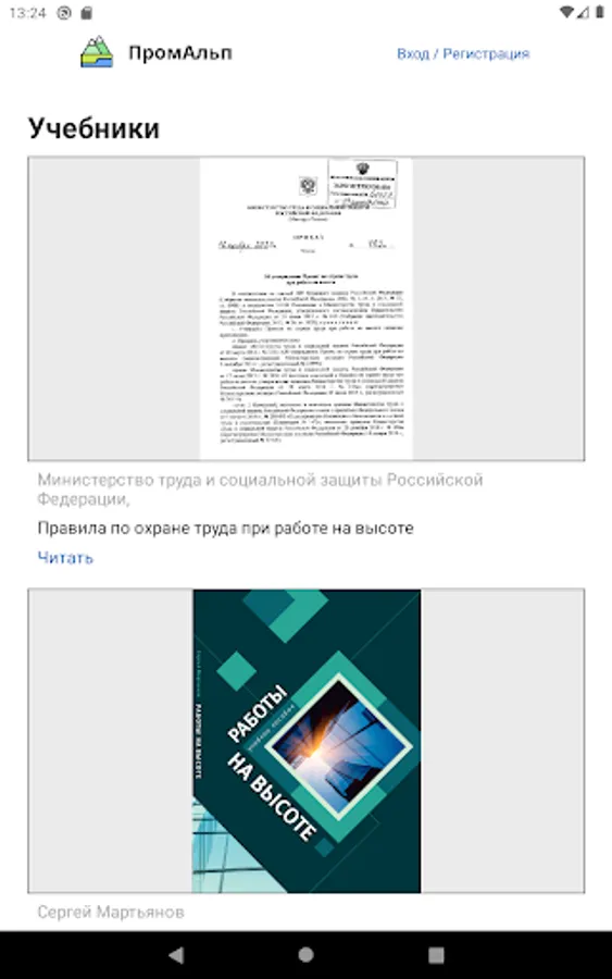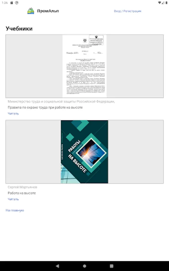 In addition, there is a section with educational materials, links to training and annual testing of knowledge when working at height for specialists of groups 1, 2, and 3.