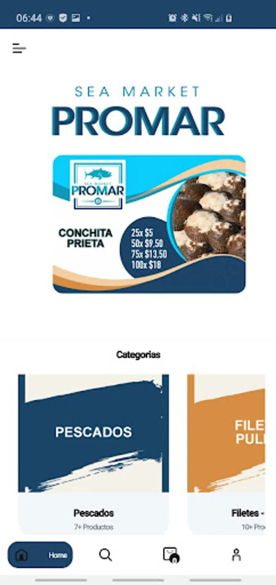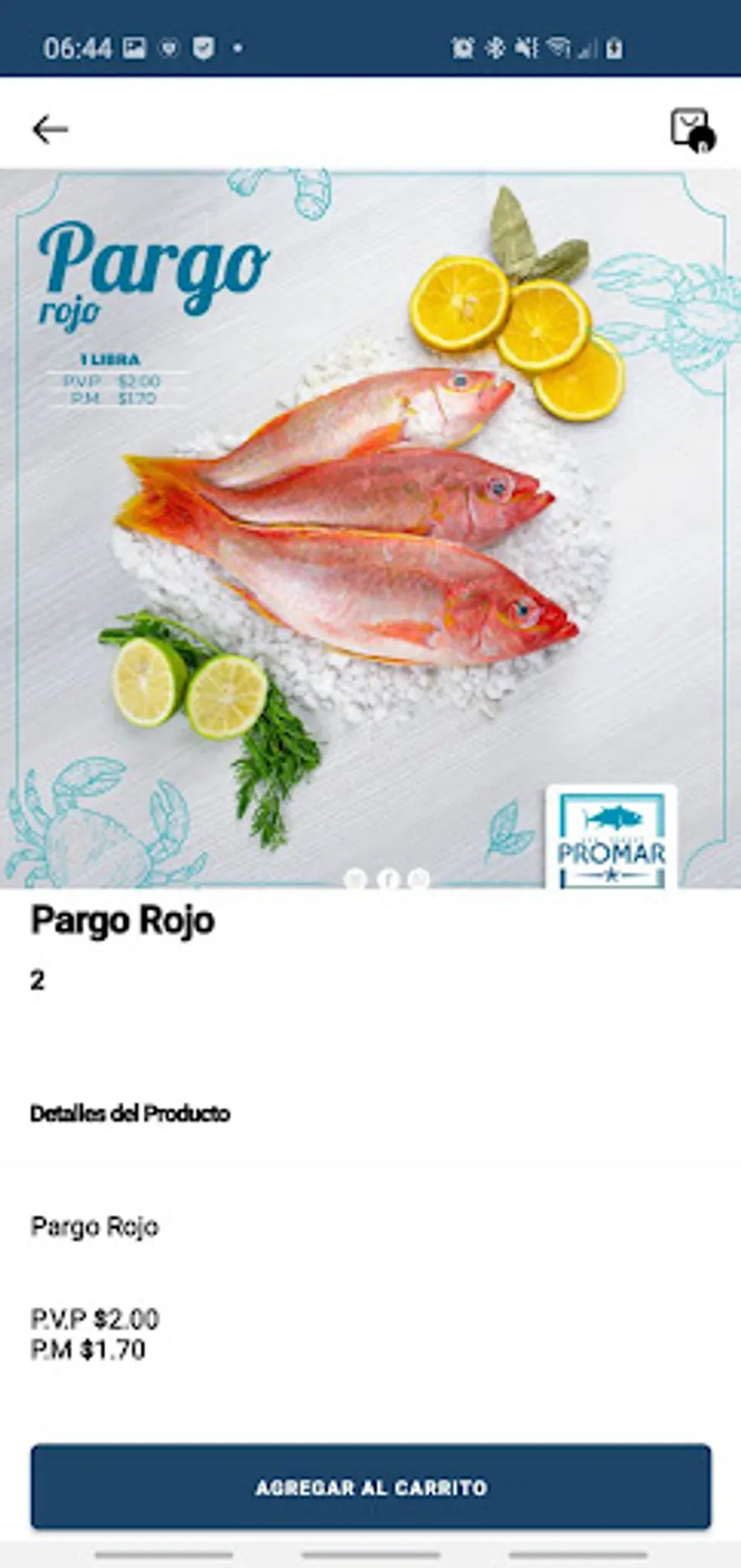 Application for the purchase of seafood and products from the Promar store that is located in Ecuador - Ambato.