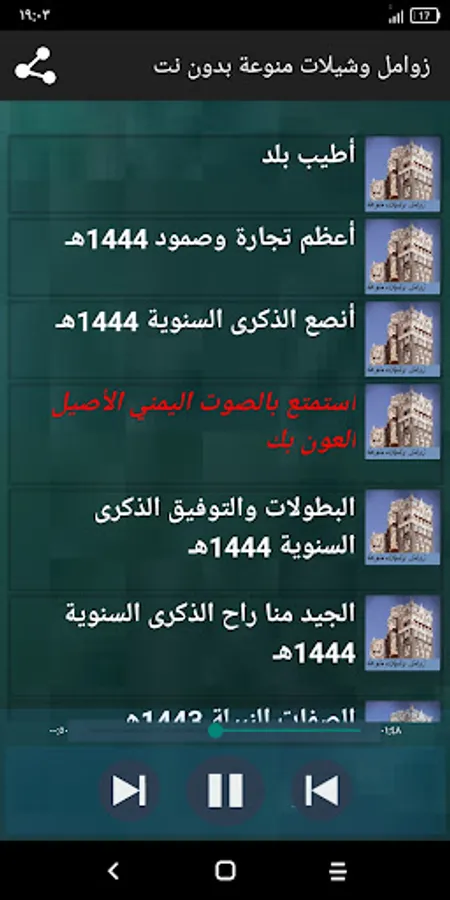 We offer you a variety of Yemeni songs and chelated power without the Internet