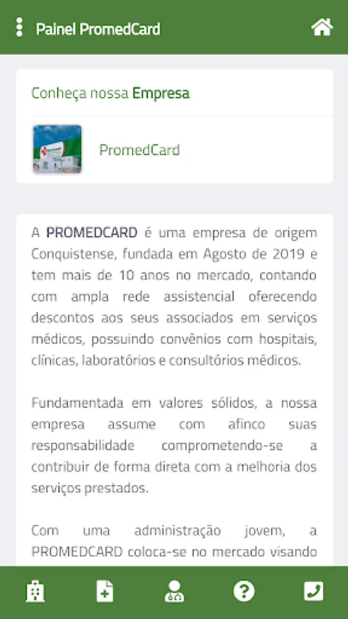 PROMEDCARD is a Conquistense company, active in the Health Care Plan for over 14 years, offering consultations and exams with lower cost to the associate, having agreements with hospitals, clinics, laboratories and doctor's offices.