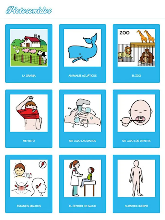 Pictosonidos is an application which through pictograms associated with sounds and phrases, it helps to increase understanding of concepts and vocabulary of people with oral communication disorders, which more easily learn through images.