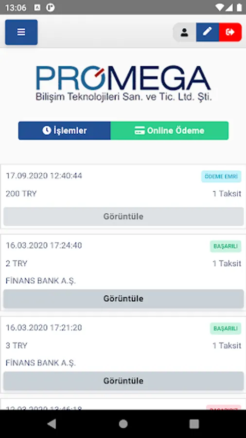 Promega Online Ödeme Screenshots
