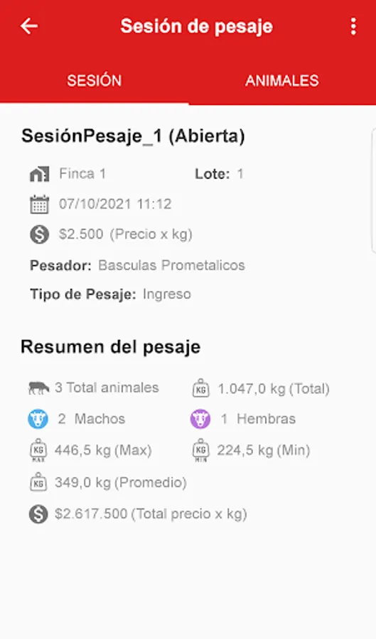 The mobile application allows you to carry out the weighing process of your farm or farms in a more professional way, it has the following functionalities: