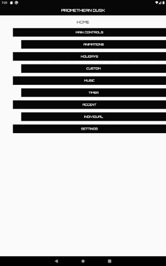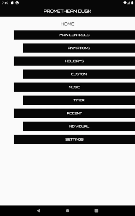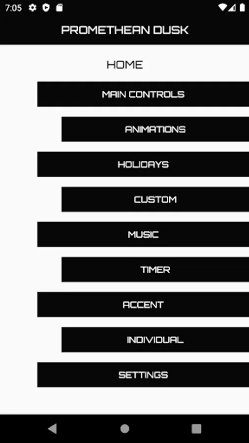 This app is used to control your Promethean Lighting System. This unlocks the full potential of your light show system with access to over 4.5 quadrillion combinations, including various effects, holidays patterns, accent lighting, music shows, and much more!