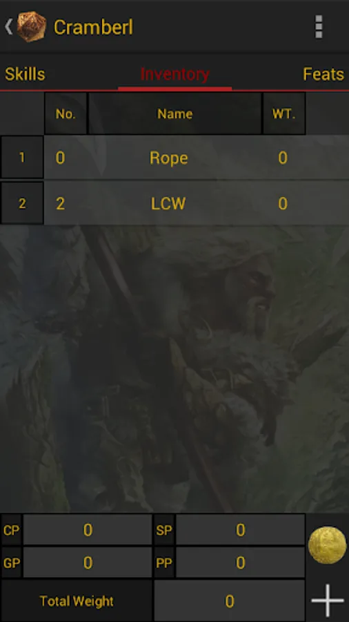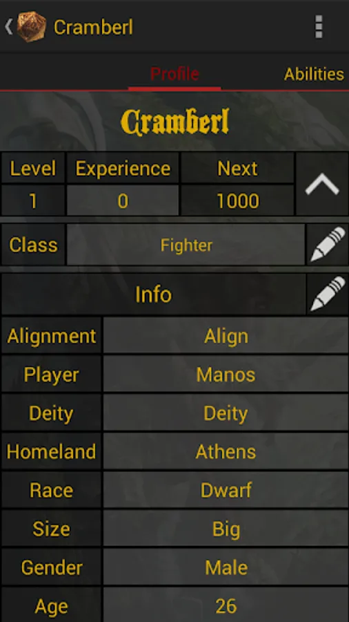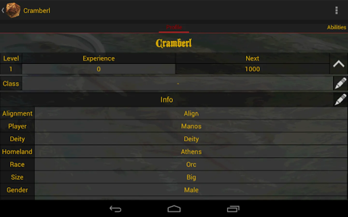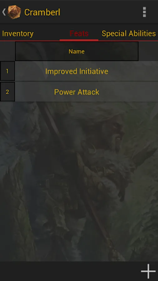Note 1: This app does not contain any predefined feats, spells or special abilities, and probably it will never have any, as they are protected by copywrite rules and i don't have permission to use them.