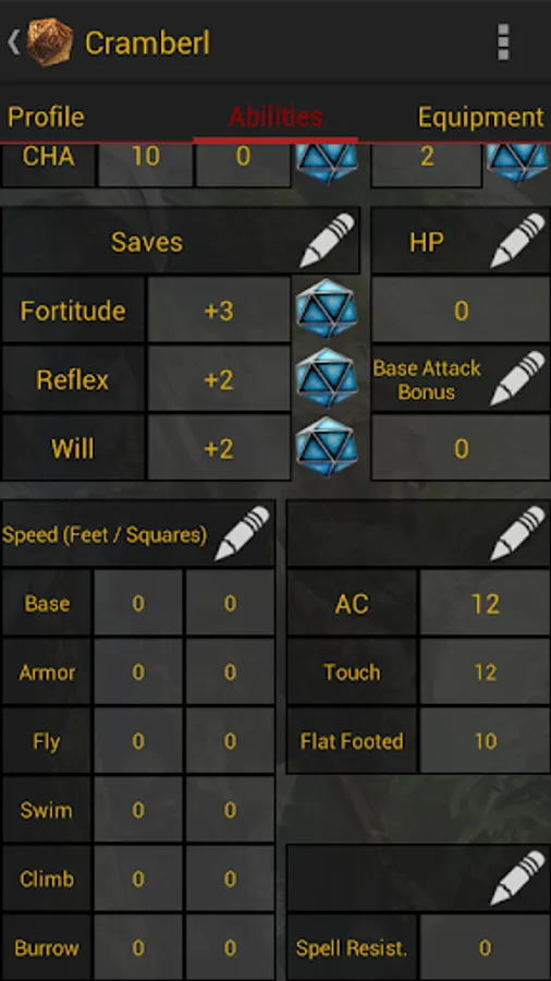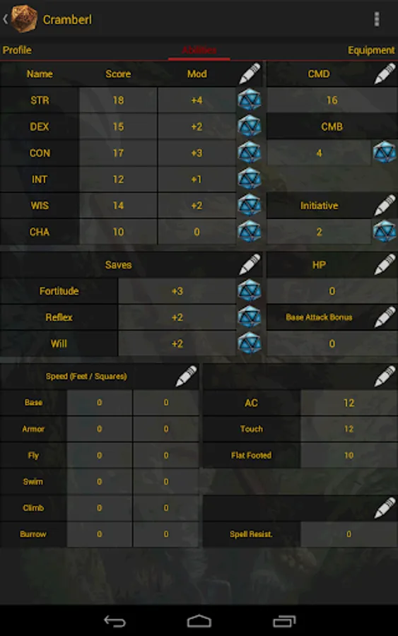 3) Automatic ability modifier calculator. App calculates the ability modifier each time you modify an ability score.