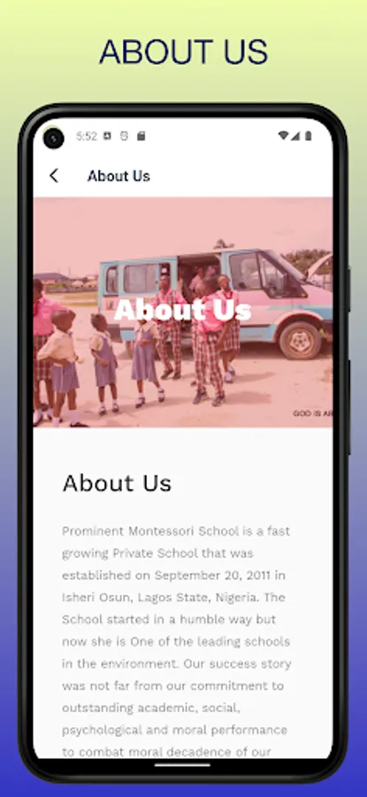 This Application has been created for the benefits of Prominent Montessori to help them with school daily activities, from the School Director, Teachers, Administrative, Parent/Guardian, Student and Inventory Manager. And also to help improve the knowledge of the Staff in an advance way, among others in the society.