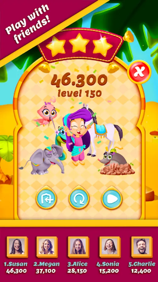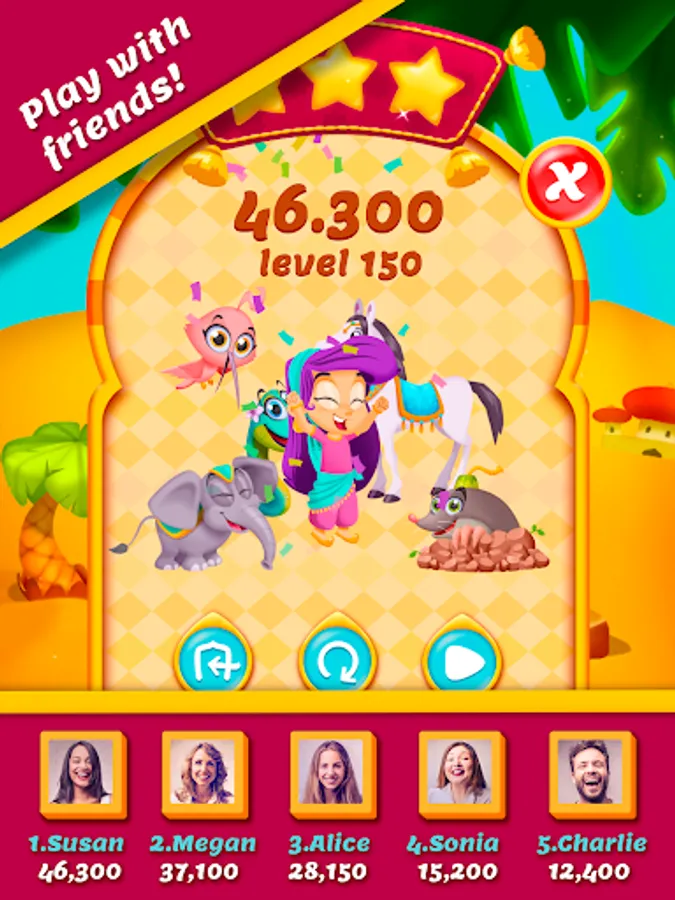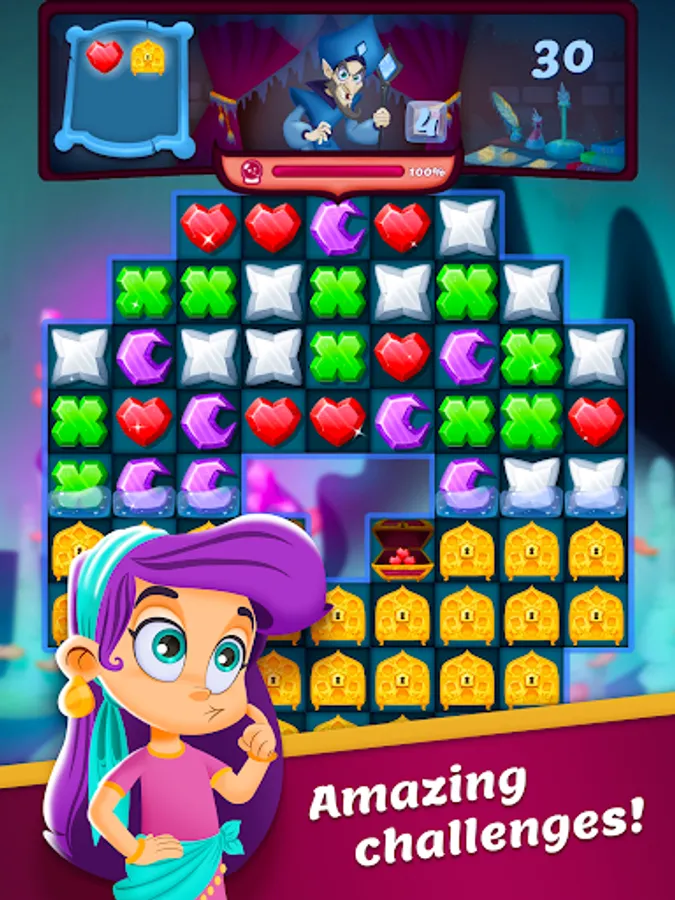 Come and help Princess Aisha to get back the Kingdom’s gems and jewels and rescue her cute animal friends. Villains have stolen the precious treasure of the entire eastern Kingdom! Put your puzzle-solving skills to the test in this marvellous and colorful world by not only using great combos, but also with the help of your pets’ super power-ups! Build your Pearl Power to defeat the wacky villains in great match-3 battles and Aisha’s gathering talents!