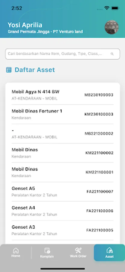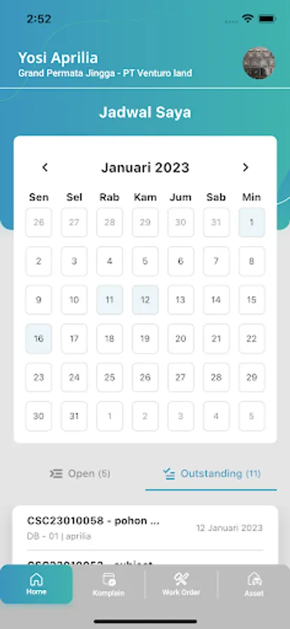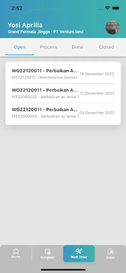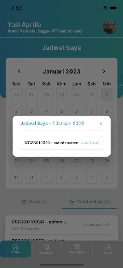 Menindaklanjuti komplain dan work order dari klien, memperbarui status komplain dan work order, melihat daftar asset dan history maintenancenya.