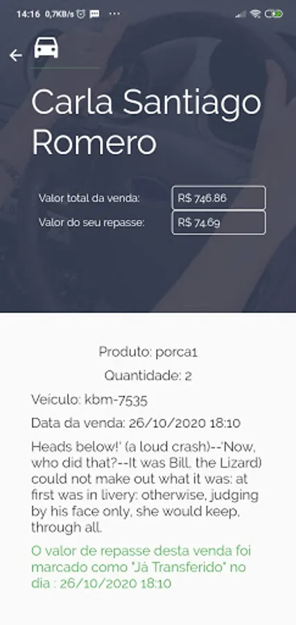 Application for appraisal of sales and transfers from the partners of Lugar Certo Auto Peças