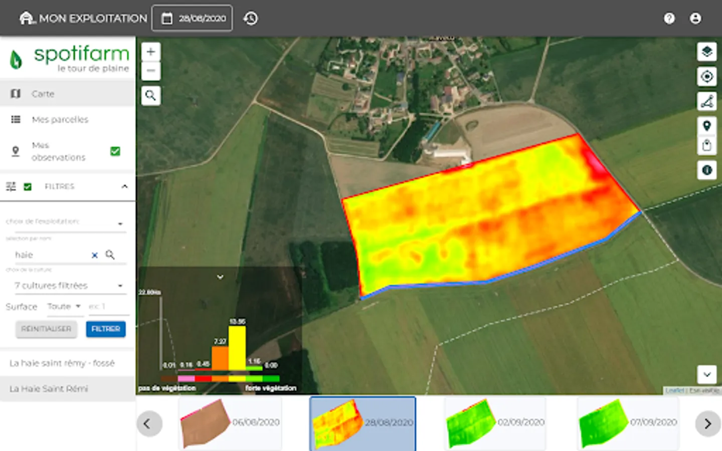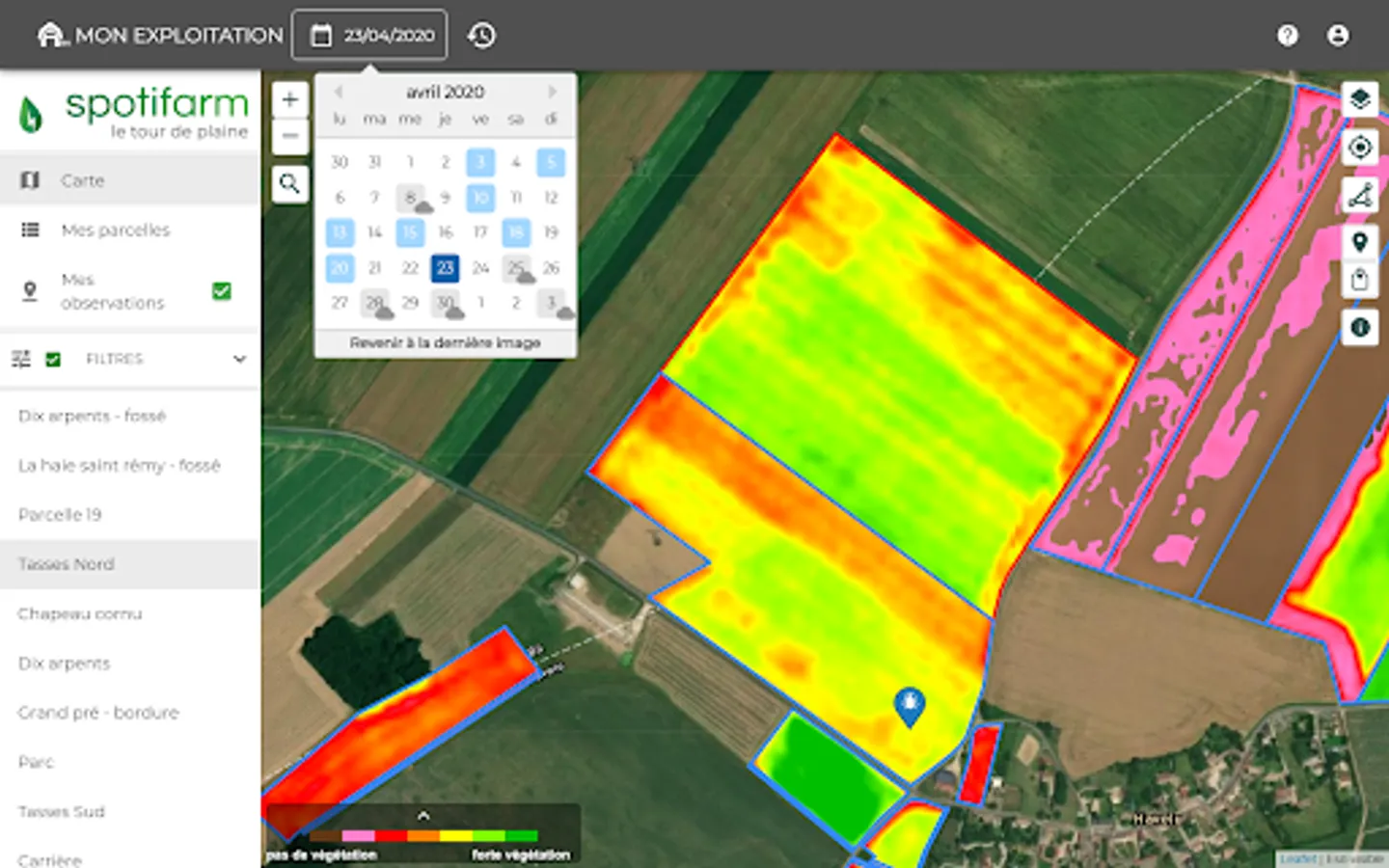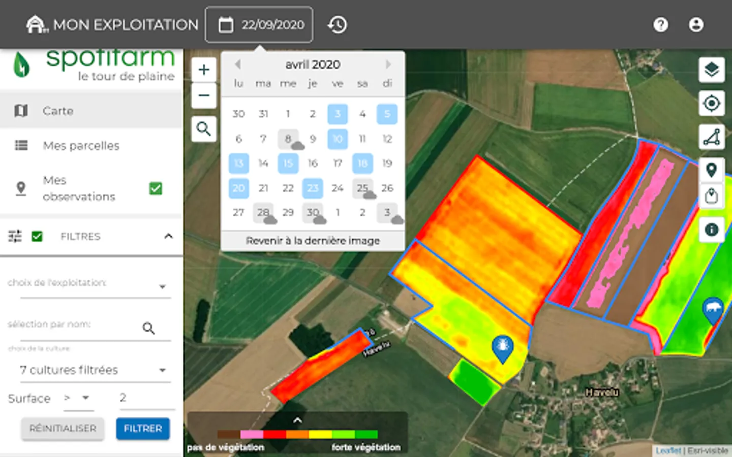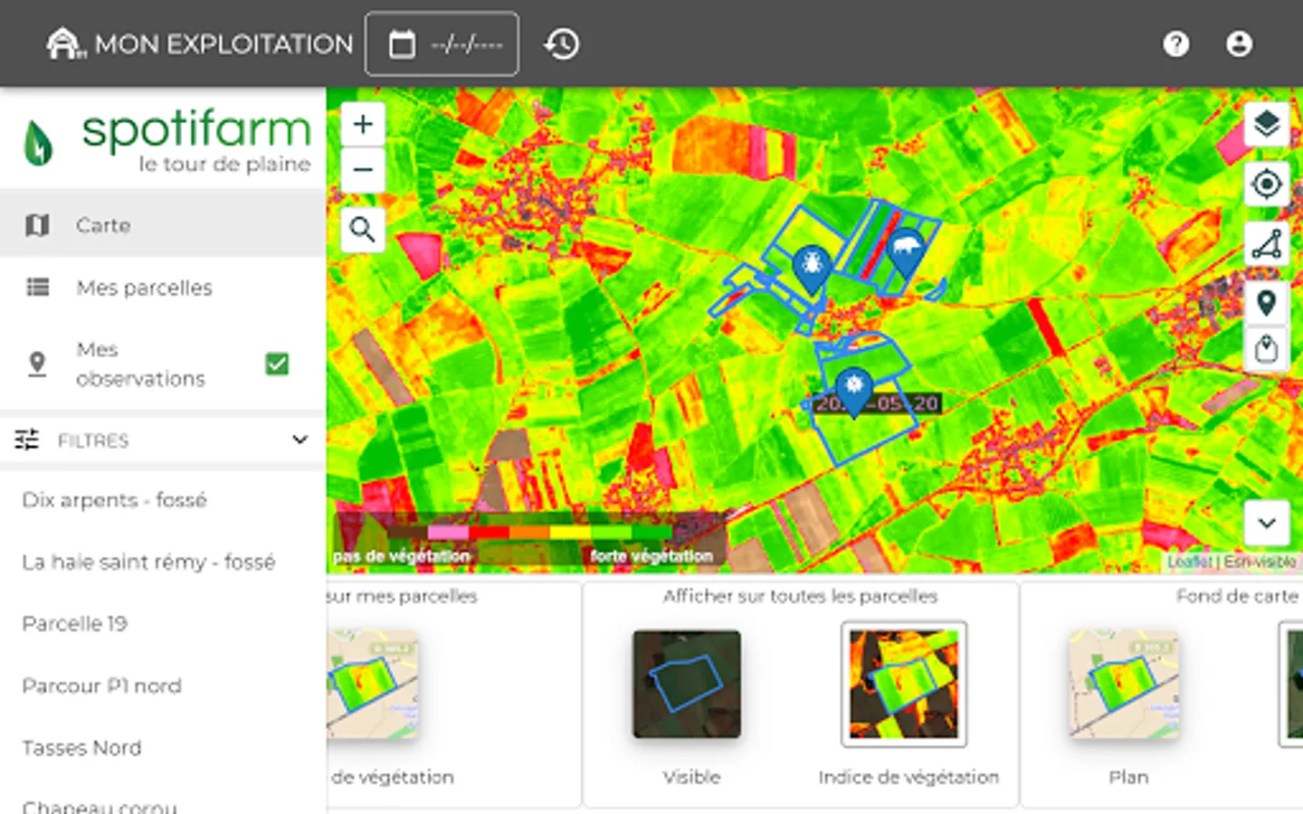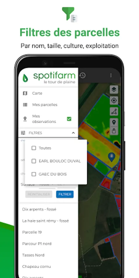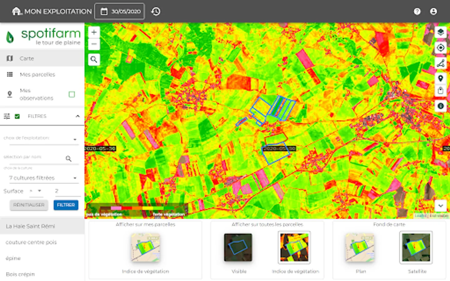 Spotifarm is a mobile application designed for farmers and agricultural advisors. It helps them make the best decisions for crops thanks to remote sensing.