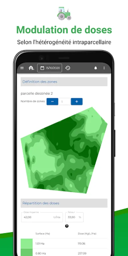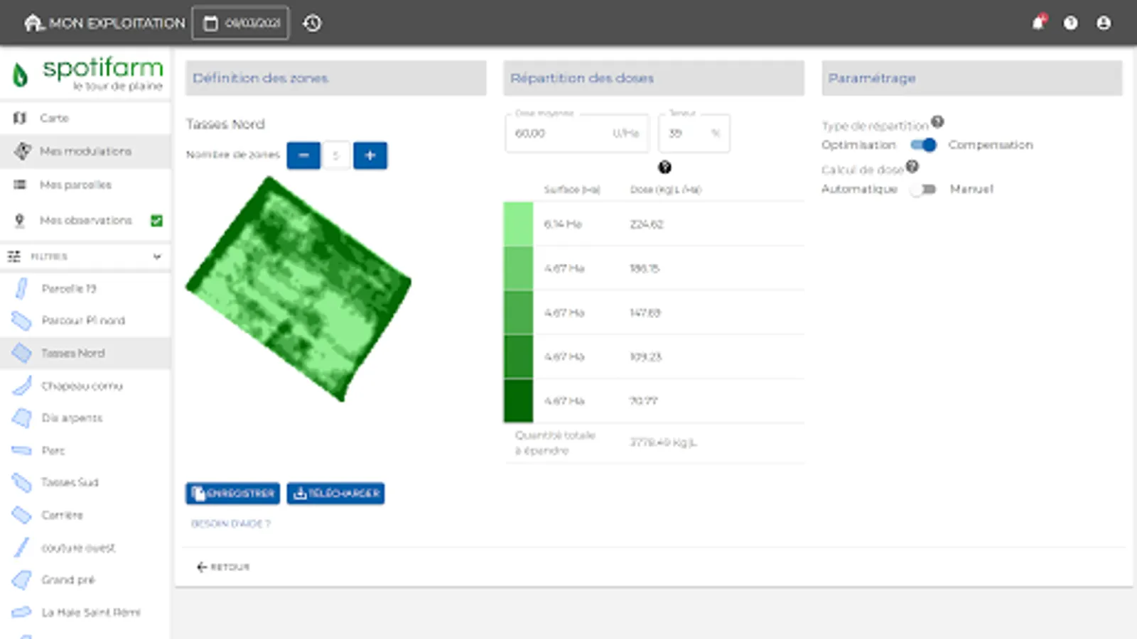 Create your intra-plot application maps simply, independently, from satellite images on the date of your choice. Easily export the dose modulation map obtained to your console in .shp or IsoXML format. Optimize your costs and maximize your yields by applying the right amount of input to the right place according to the potential of the crop.