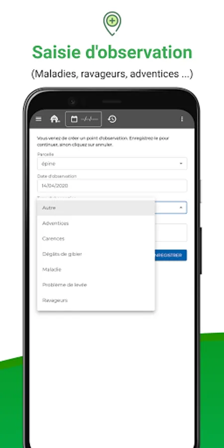 - Geolocate yourself in a given area using GPS to identify a pest or disease