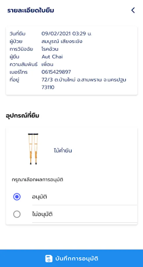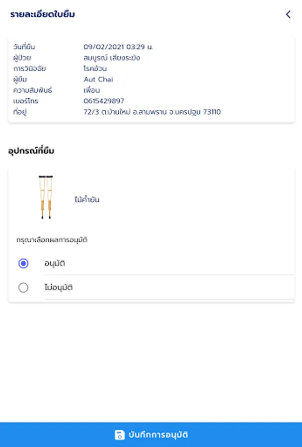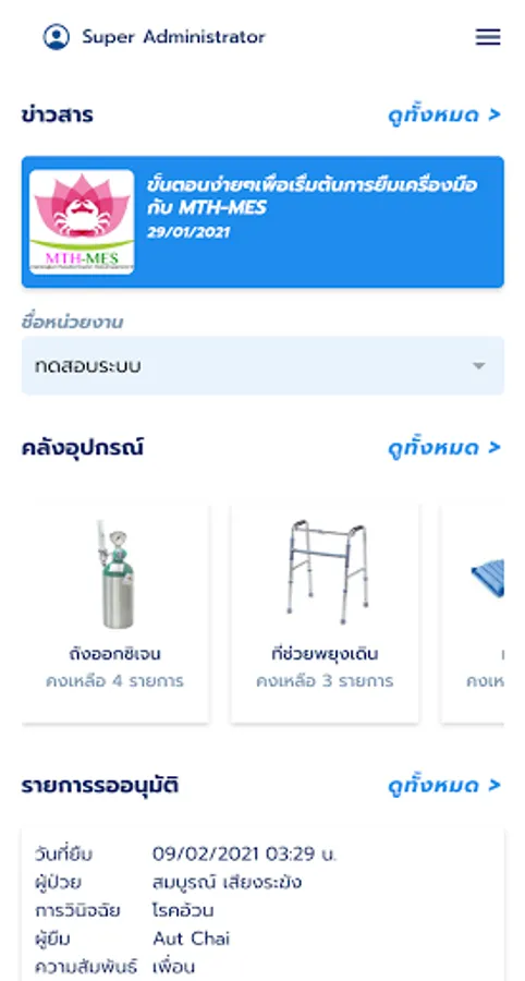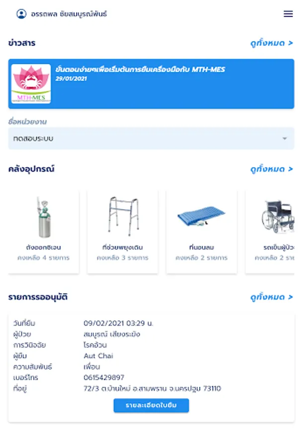 Maha Vajiralongkorn Thanyaburi Hospital - Approval System for Medical Equipments Sharing. (App. for staff)