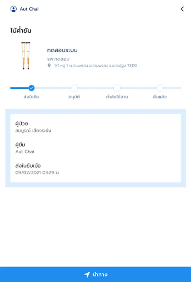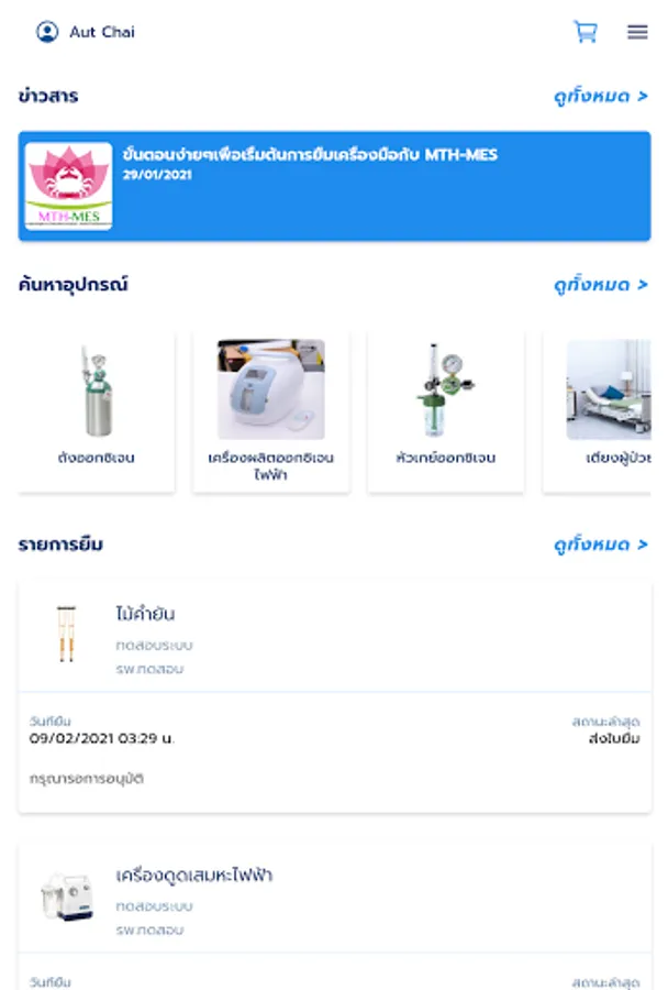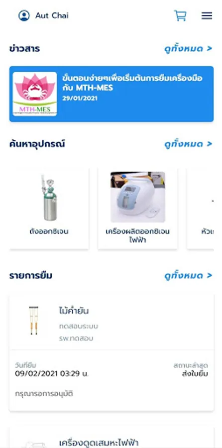 The availability of this application allows people in countries who need medical devices. Can be convenient You can choose to borrow tools from hospitals or hospitals near your home to use at home to reduce travel. Going in a crowded hospital