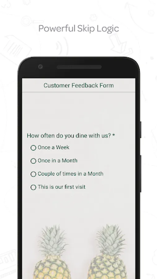 Our Android Survey app lets businesses create beautiful, intuitive, and engaging customer survey and feedback forms which are a delight to use. The businesses get real insight into their customers' sentiments, behaviors, and can analyze trends over time, which in turn help them make the right choices.