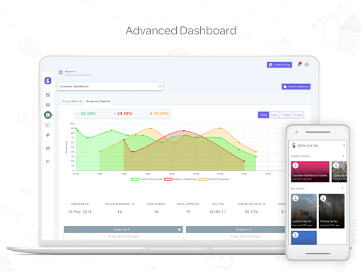 * Advance survey performance analytics like average time to complete the survey, survey completion ratio, GPS locations of responses collected, etc.